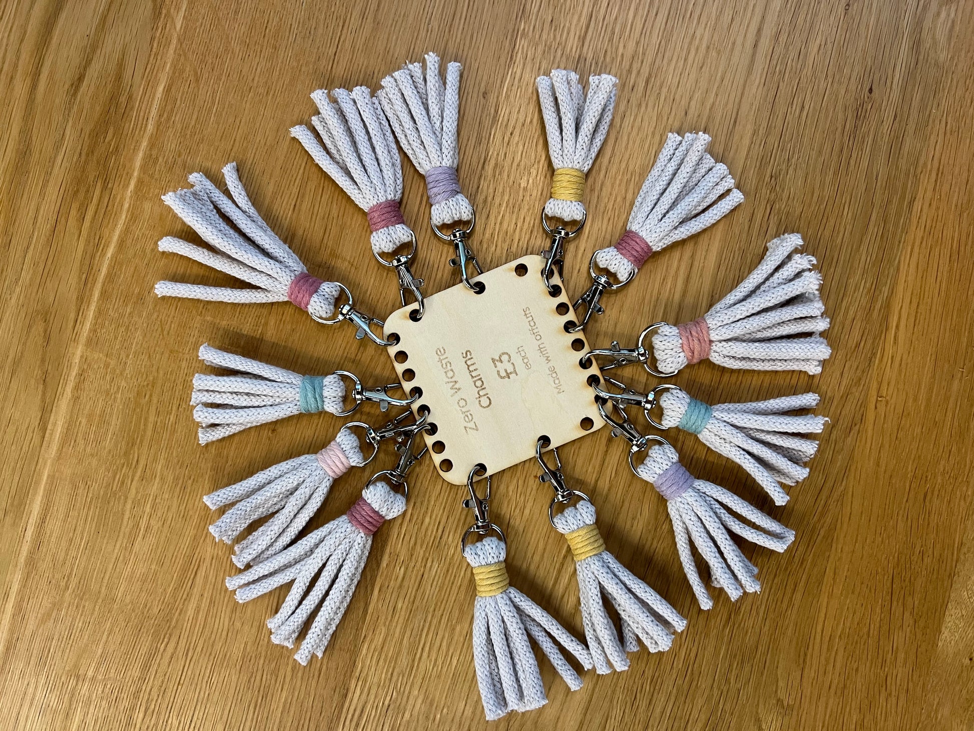 Our zero waste keychains are made from leftover bits of recycled cotton cord – meaning you’re giving those scraps a super cute second life 💫 They’re fun, eco-friendly and full of personality – just like you! Colour dispatched at random.