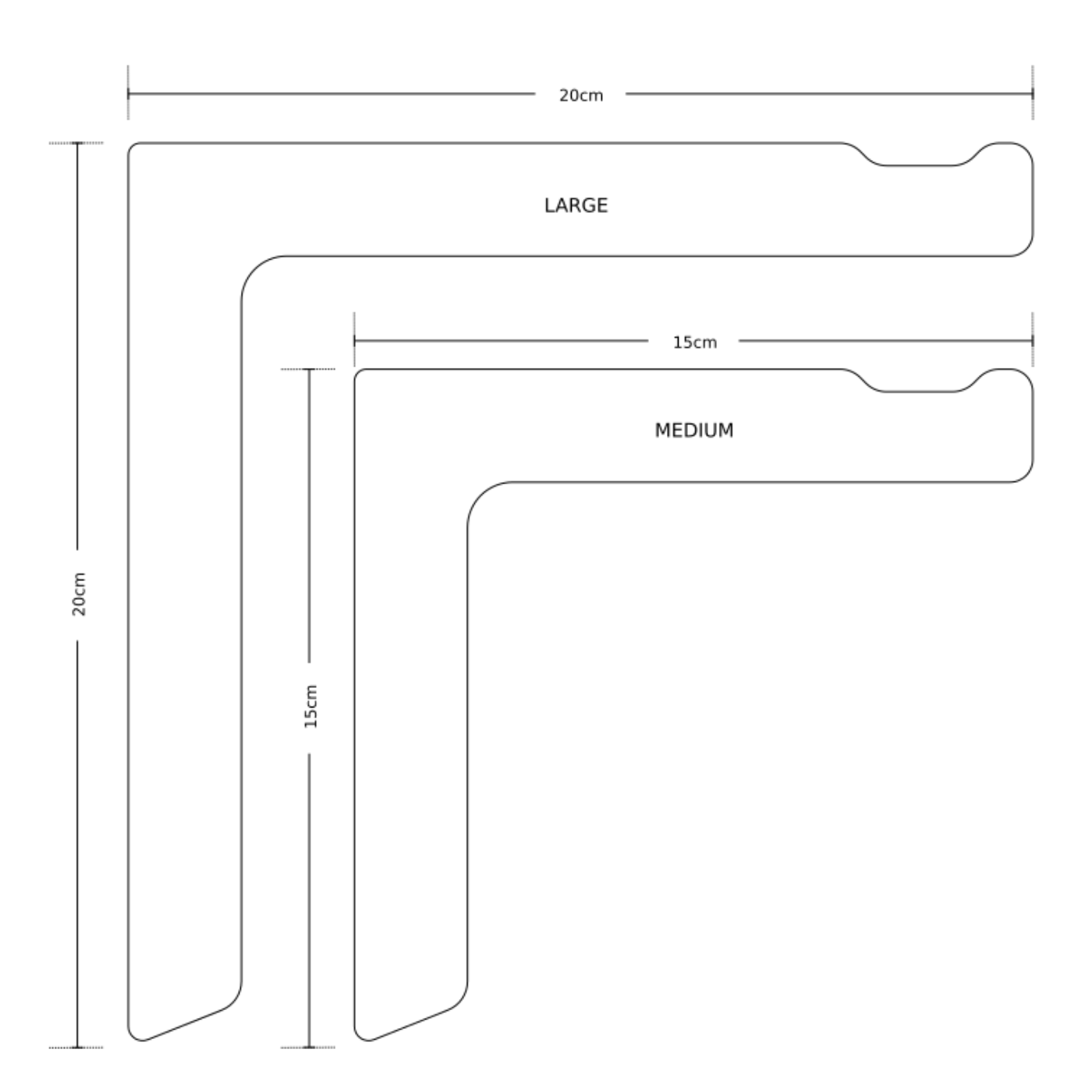 - Large - wall to bracket end 20cm (20cm x 20cm x 1.5cm)